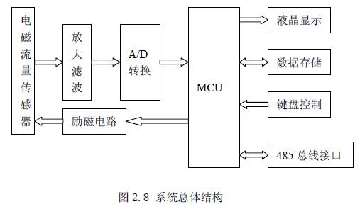通过对电磁流量计检测仪表关键技术的分析、研究和比较,并综合国内外电磁流量检测仪表产品智能化、继承化、开放化的发展趋势,好色App提出了集转换器、计算仪、RS-485标准总线于一体的智能电磁流量计.其总体结构如图2.8: